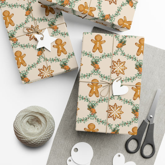 Gingerbread Christmas Wrapping Paper, Classic Christmas Gift Wrap Roll, Holiday Gift Wrap, Christmas Paper, Minimalist, Baking