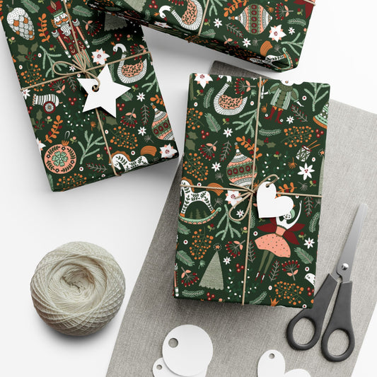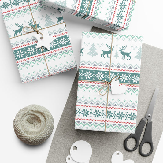 Polar Bear Nordic Christmas Patchwork Wrapping Paper, Classic Penguin Christmas Gift Wrap Roll, Holiday Gift Wrap, Christmas Paper, Gift
