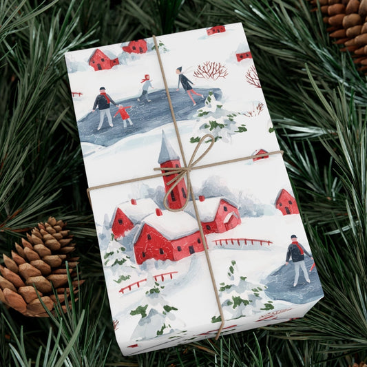 Mittens & Ice Skates Christmas Wrapping Paper, Woodland Christmas Wrapping Paper, Holiday Gift Wrap