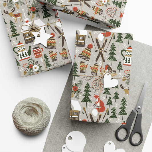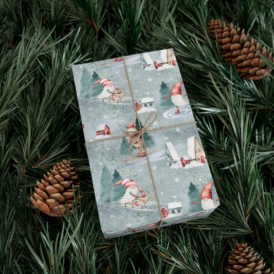 Scandinavian Gnome Christmas Gift Wrap, Christmas Wrapping Paper, Reindeer Skiing Christmas Gift Wrap, Wrapping, Christmas Gifts