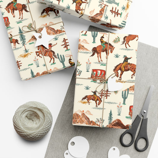 Wild West Cowgirl Cowboy Wrapping Paper, Desert Cactus Gift Wrap Roll, Birthday Gift Wrap