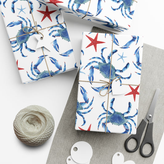 Summer Patriotic Blue Crabs Wrapping Paper