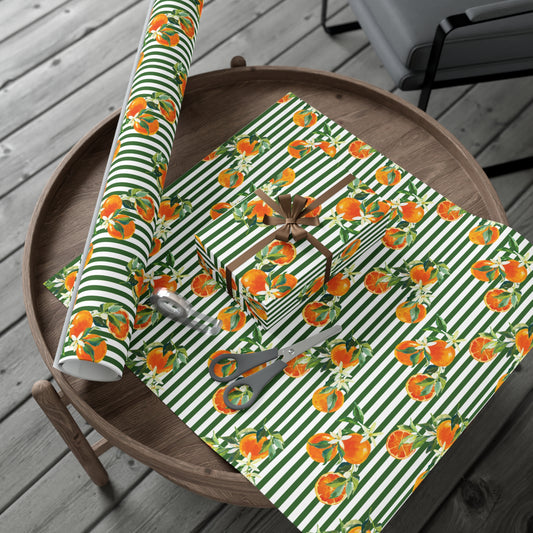 Summer Green Stripe Orange Citrus Wrapping Paper