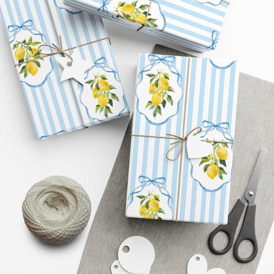 Summer Blue Stripe Lemon Wrapping Paper