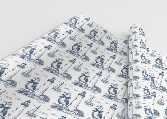 Summer Navy Seagull & Lighthouse Sketched Line Art