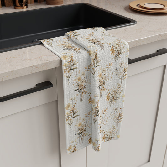 Spring Rabbits Floral Hand Towel for Kitchen and Bath, Bunnies, Spring Home Decor, Easter, Cottage style