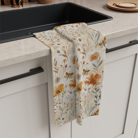 Spring Botanical Garden And Butterflies Hand Towel for Kitchen and Bath, Bunnies, Spring Home Decor, Easter, Cottage style