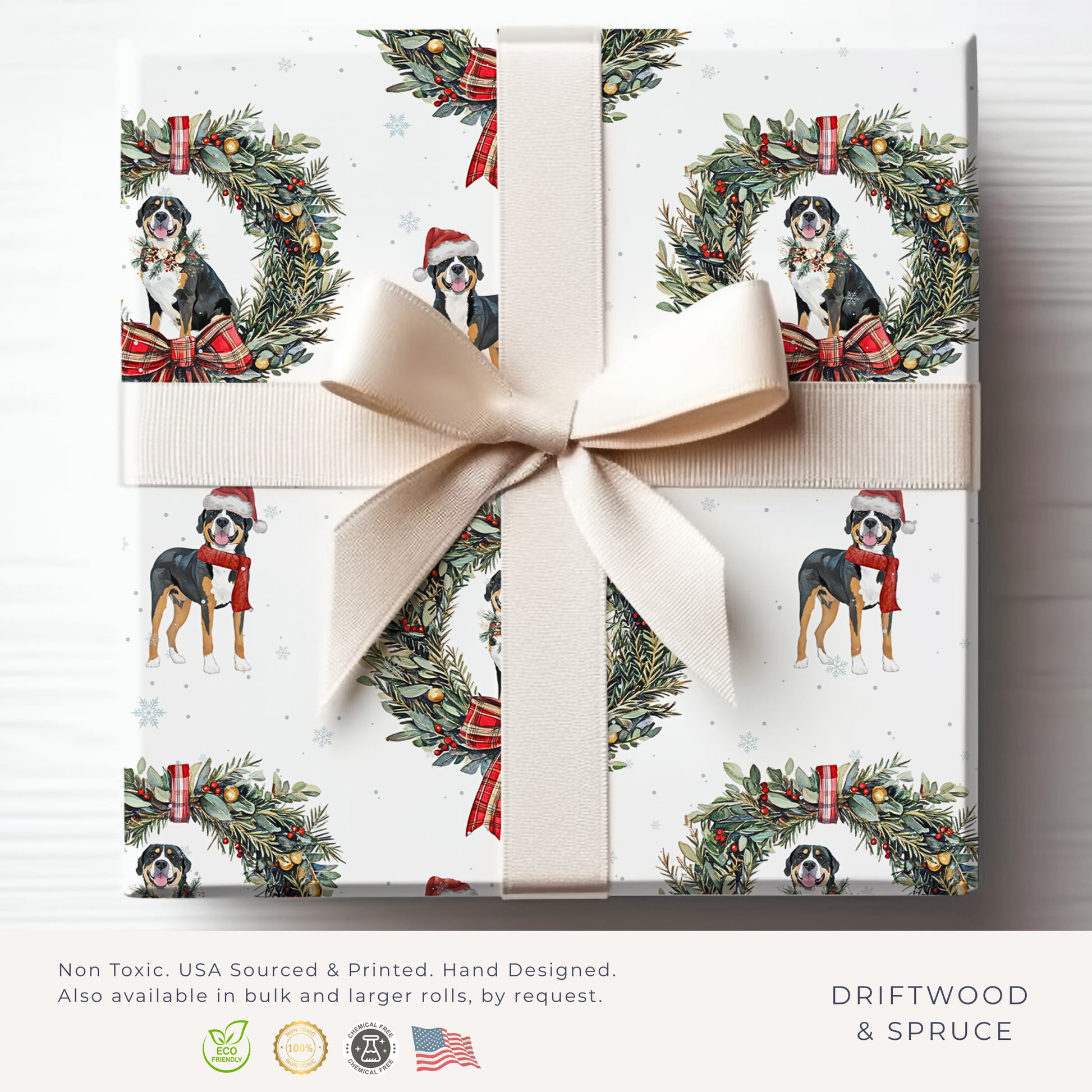 Greater Swiss Mountain Dog Snowy Christmas Wrapping Paper