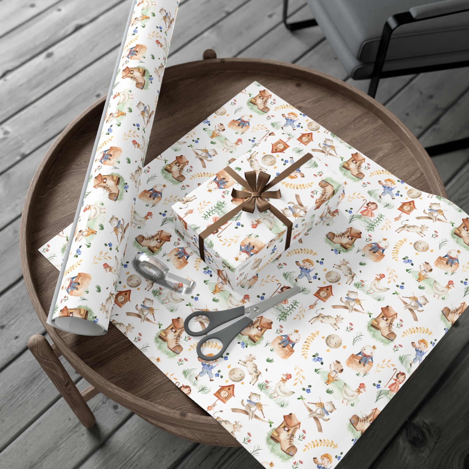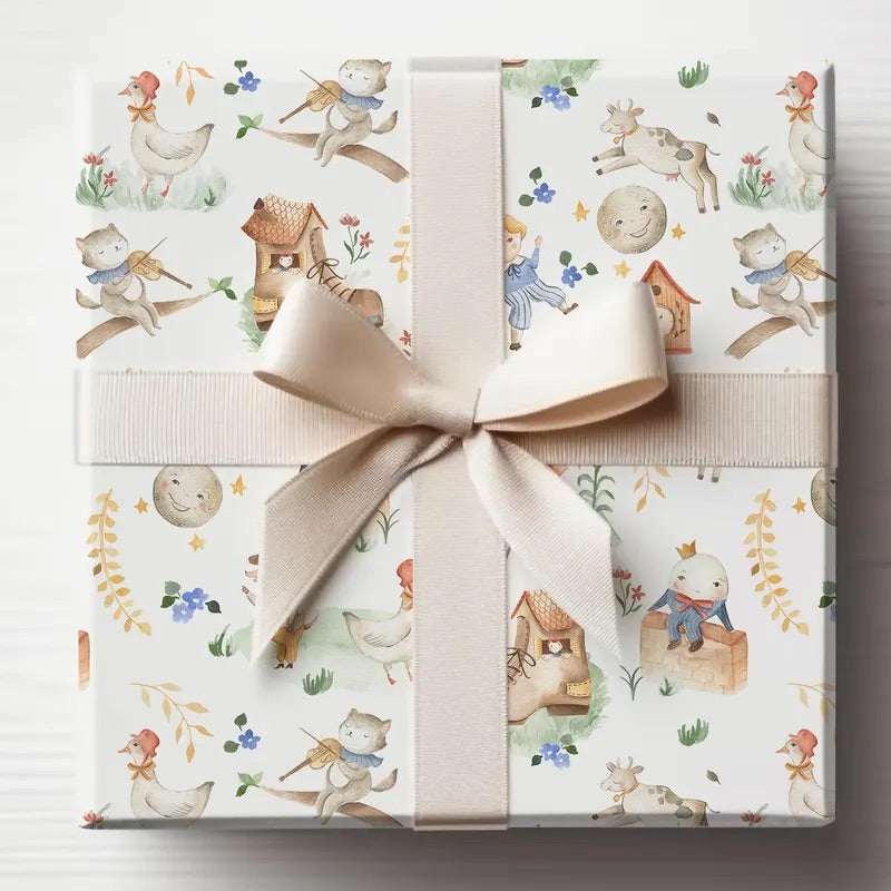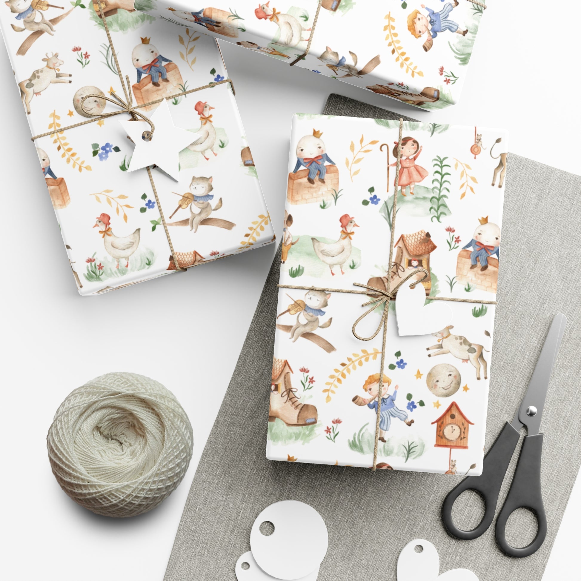 Children's Nursery Rhyme Wrapping Paper, Baby Shower Gift Wrap Roll, Birthday Gift Wrap