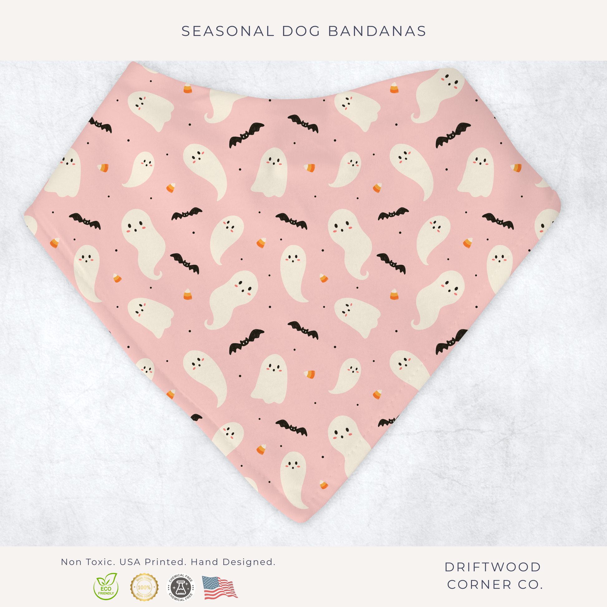 Halloween Pink Ghosts and Bats Dog Bandana, Halloween Dog Apparel, Trick or Treat, Dog Costume, Spooky Pet Neckwear, Halloween Dog
