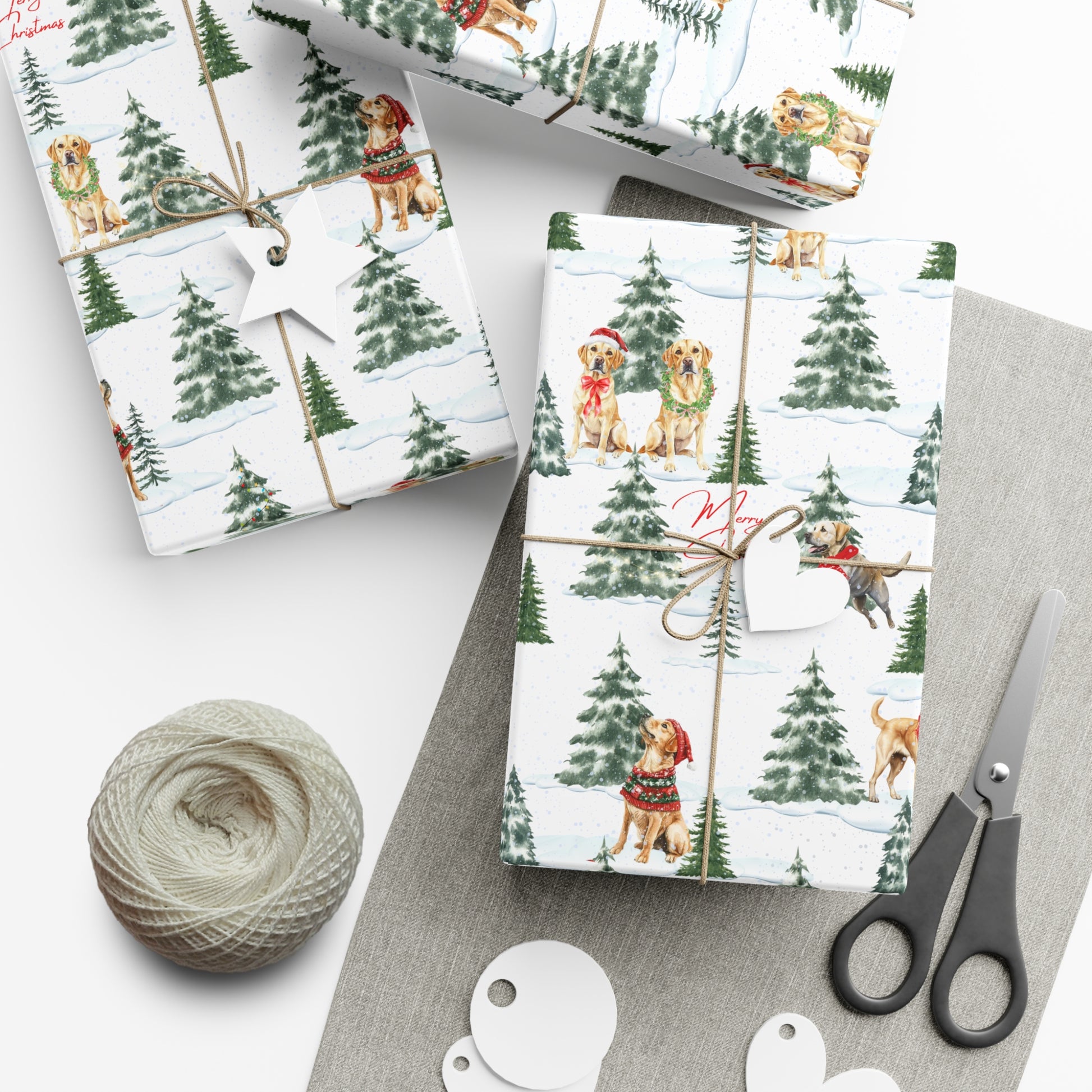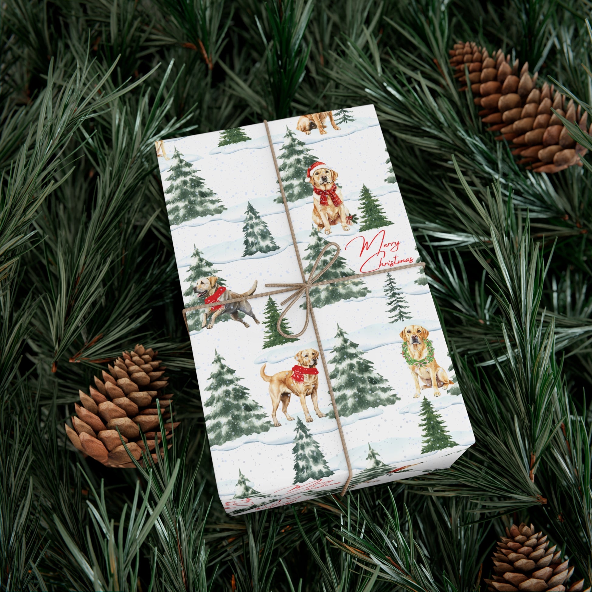Snowy Yellow Labrador Retrievers Christmas Wrapping Paper, Labrador Retriever Dog Gift Wrap, Christmas Wrapping Paper, Christmas Gift Wrap