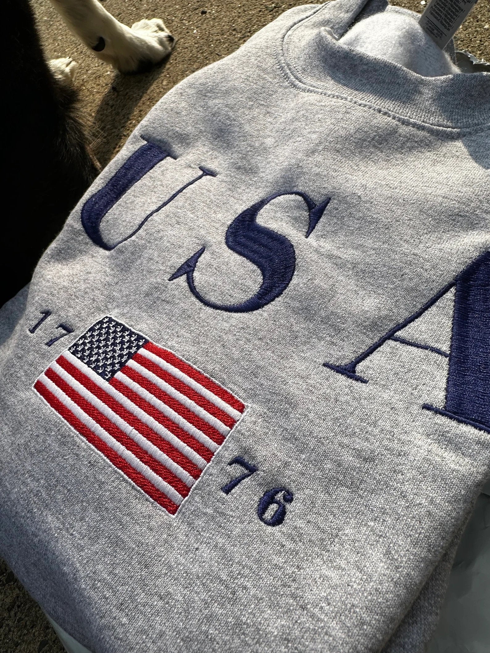 USA Embroidered Sweatshirt - New Ash Color (light heather grey) for 2025!