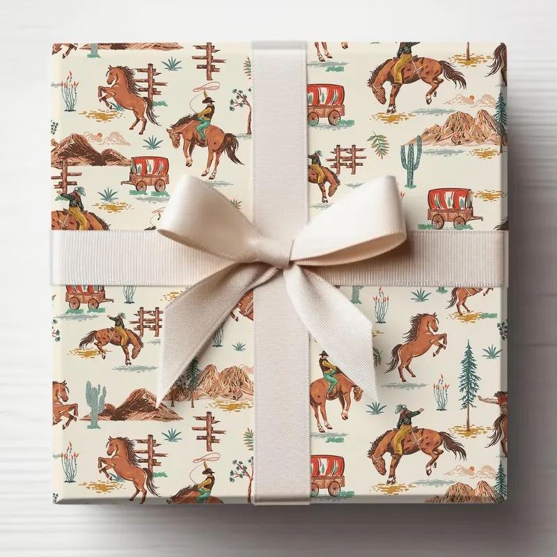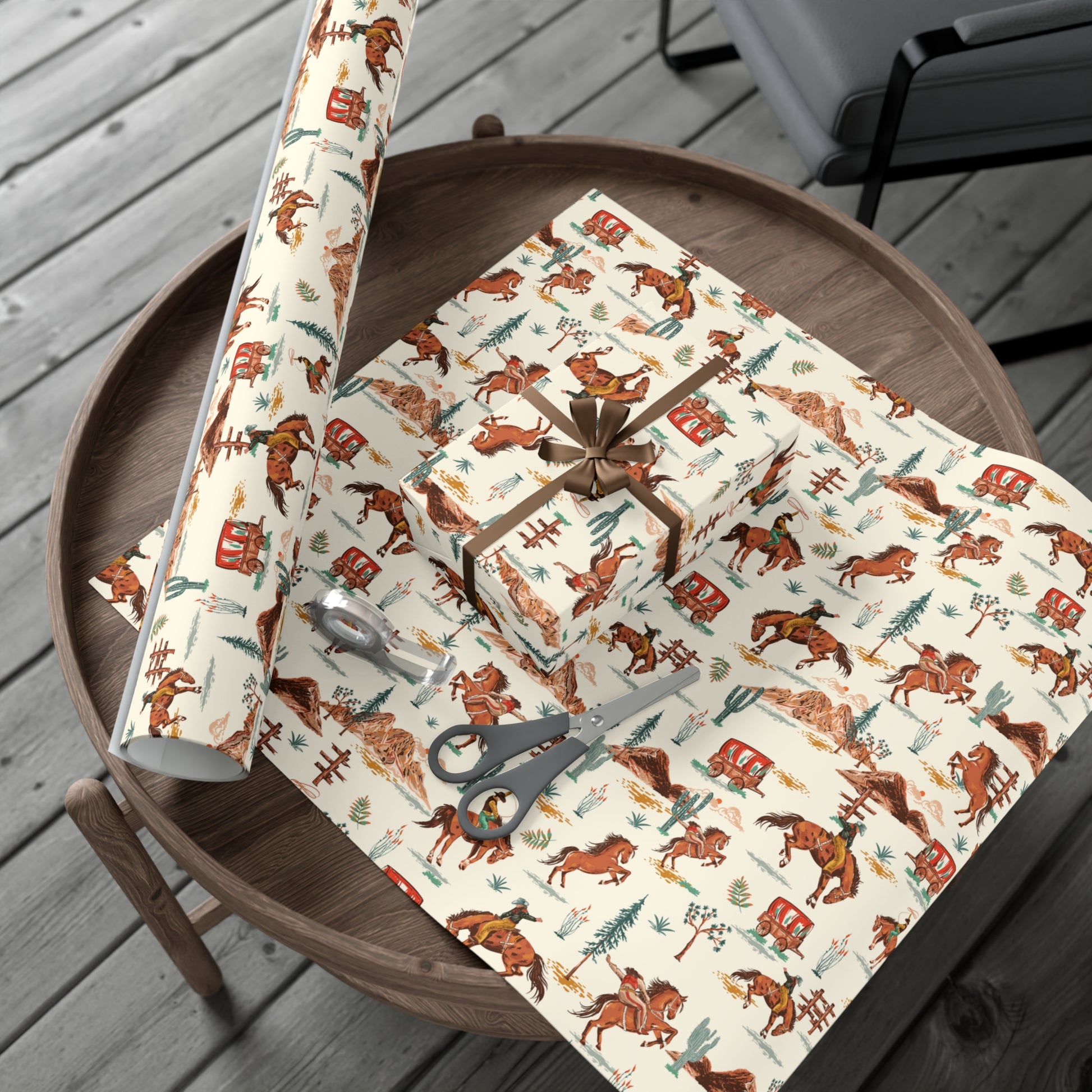 Wild West Cowgirl Cowboy Wrapping Paper, Desert Cactus Gift Wrap Roll, Birthday Gift Wrap