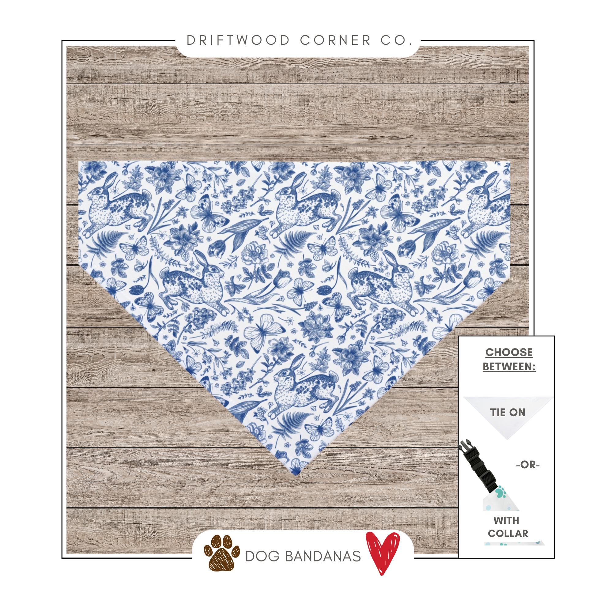 Blue Toile Easter Dog Bandana,Spring Dog Bandana, Grand Millennial Dog Pup