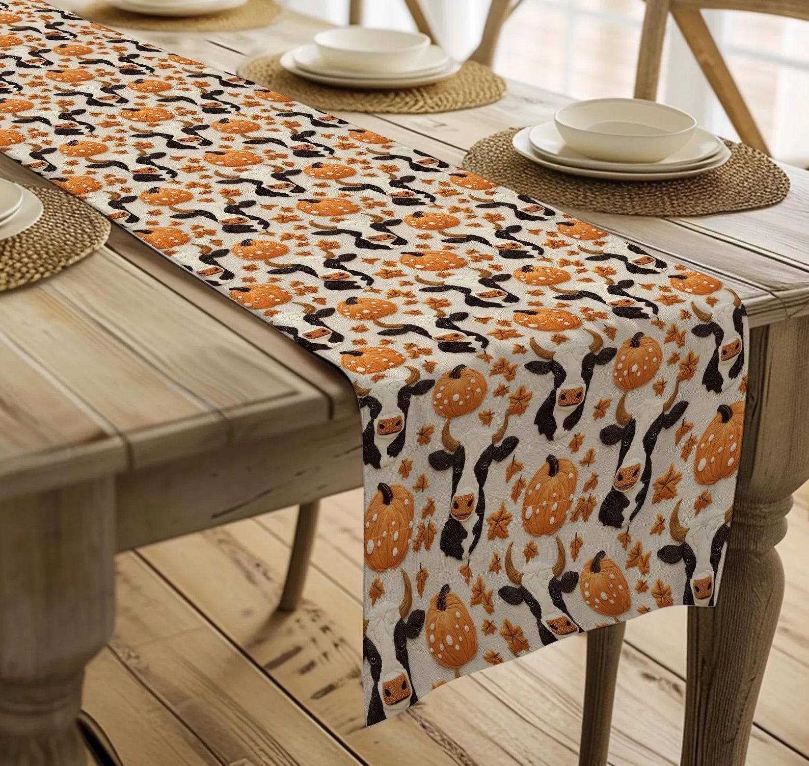 *IMPORTANT* : This design gives the appearance of being embroidered, yet it is actually a flat printed graphic! Fall Graphic Table Runners - Perfect Seasonal Decor for Your Home