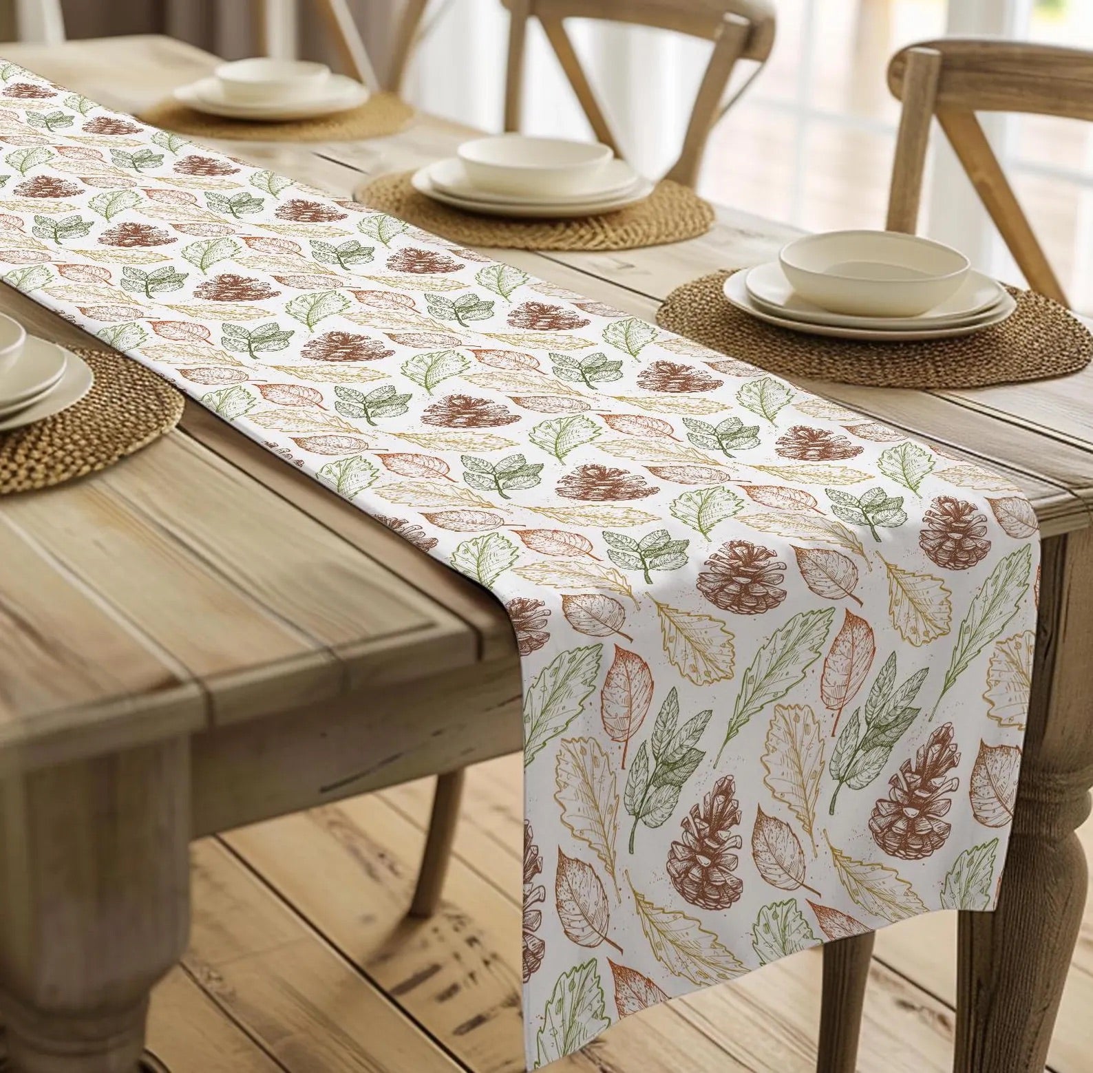 Fall Harvest Leaves and Pinecones Table Runner