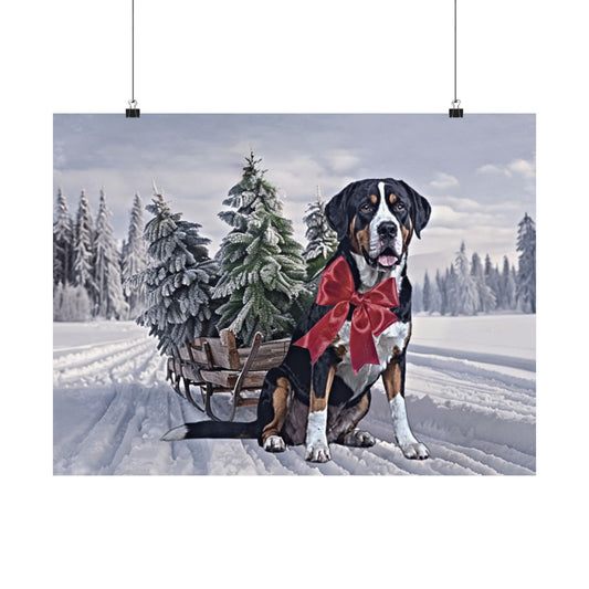 (No Frame) Christmas Greater Swiss Mountain Dog Christmas Wall Art Print