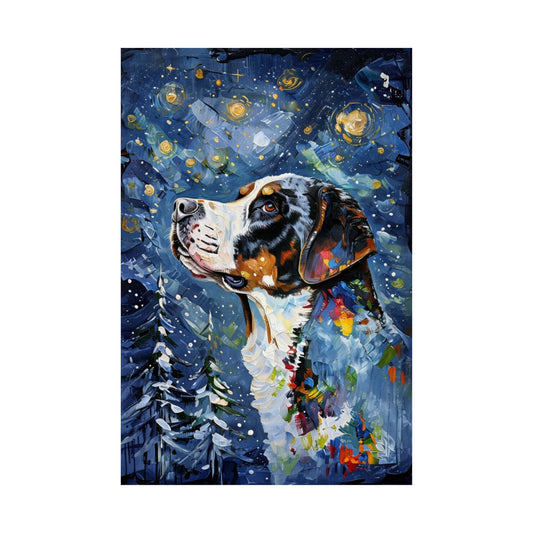 (No Frame) Starry Winter Night Greater Swiss Mountain Dog Christmas Wall Art Print