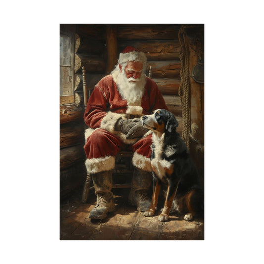 (No Frame) Santa & Swissy Christmas Wall Art Print