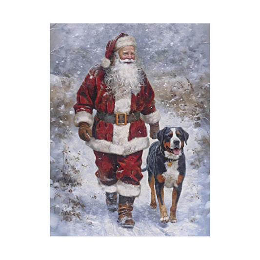 (No Frame) Santa & Swissy Winter Walk Christmas Wall Art Print