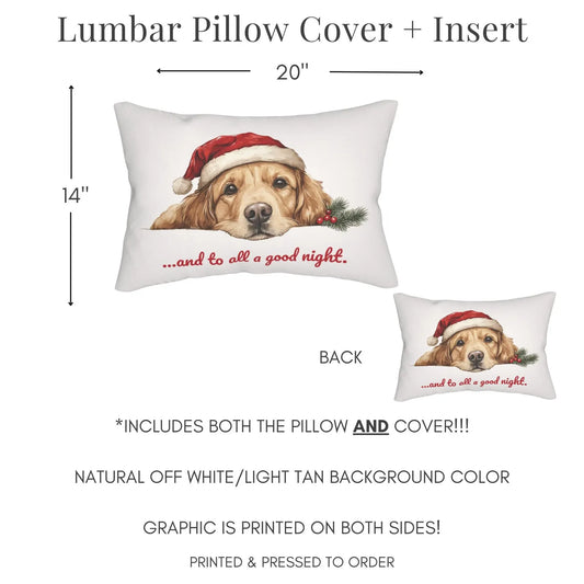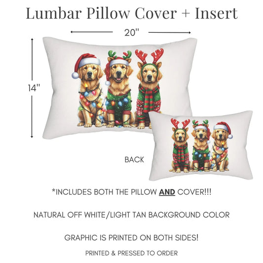 Golden Retriever Christmas Lumbar Pillow & Cover, Oversized Polyester Lumbar Pillow and Cover, Christmas Decor, Golden Retriever Christmas