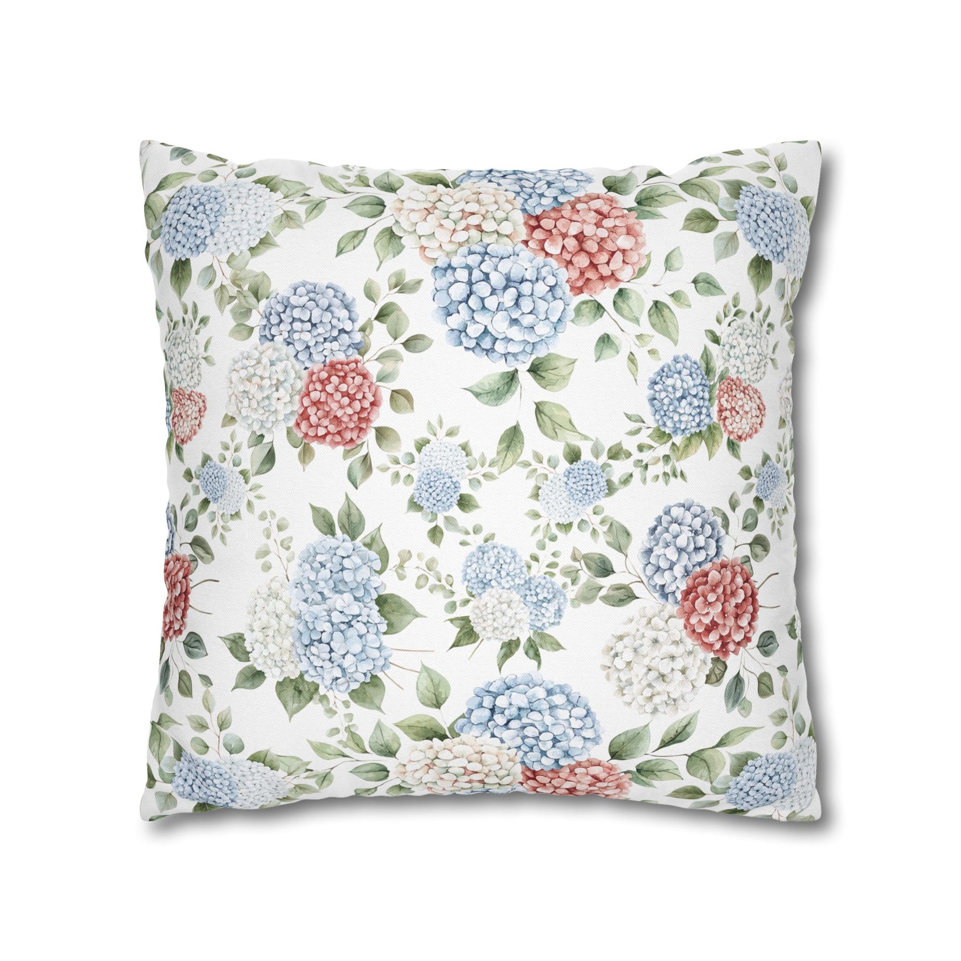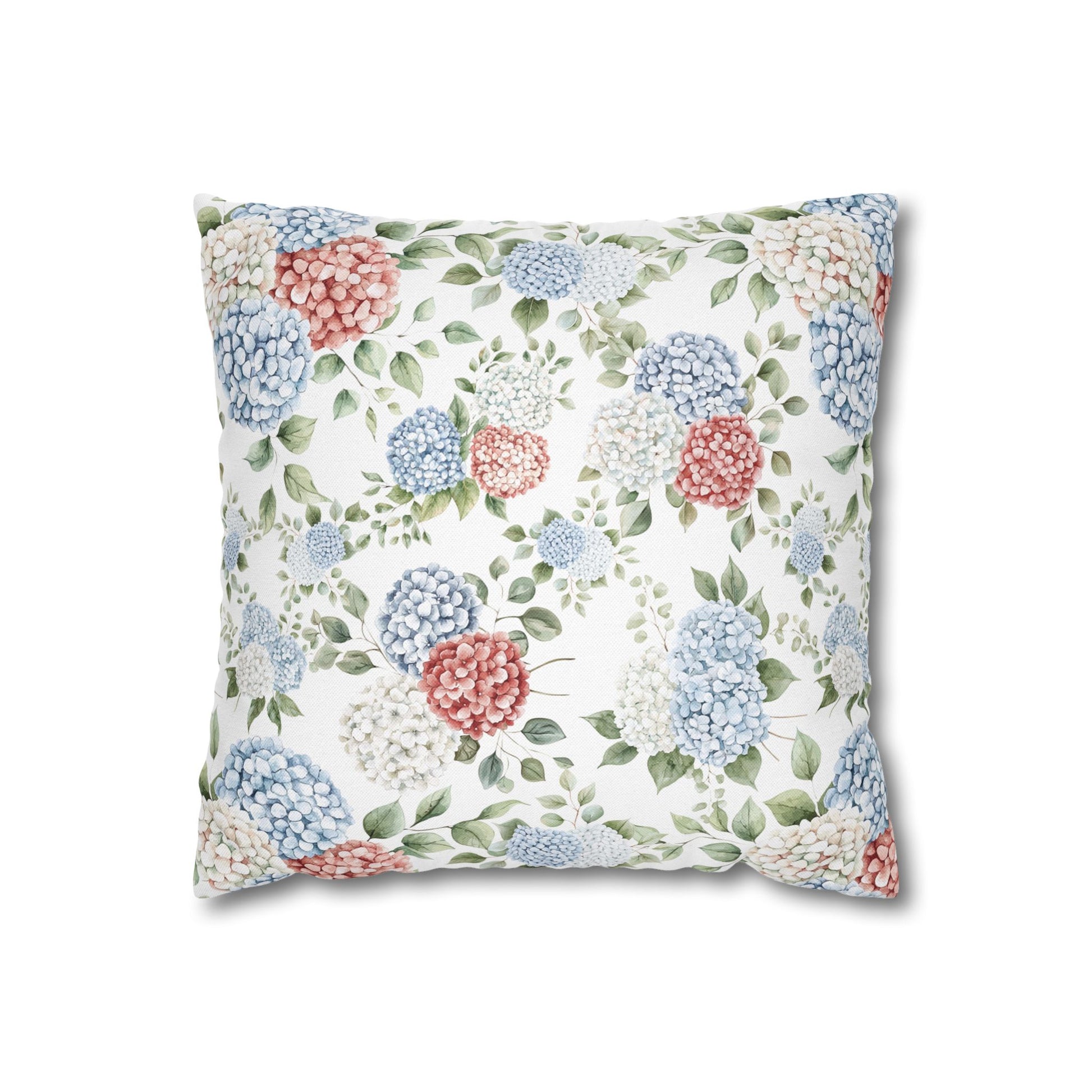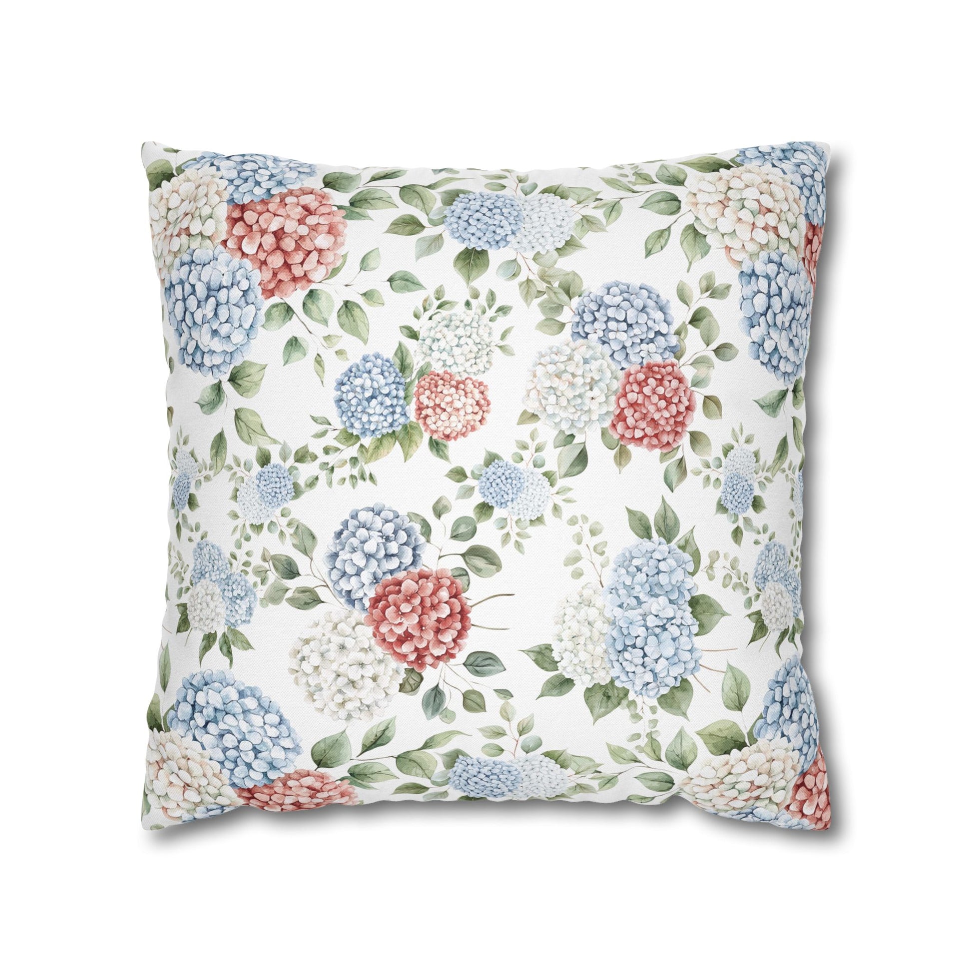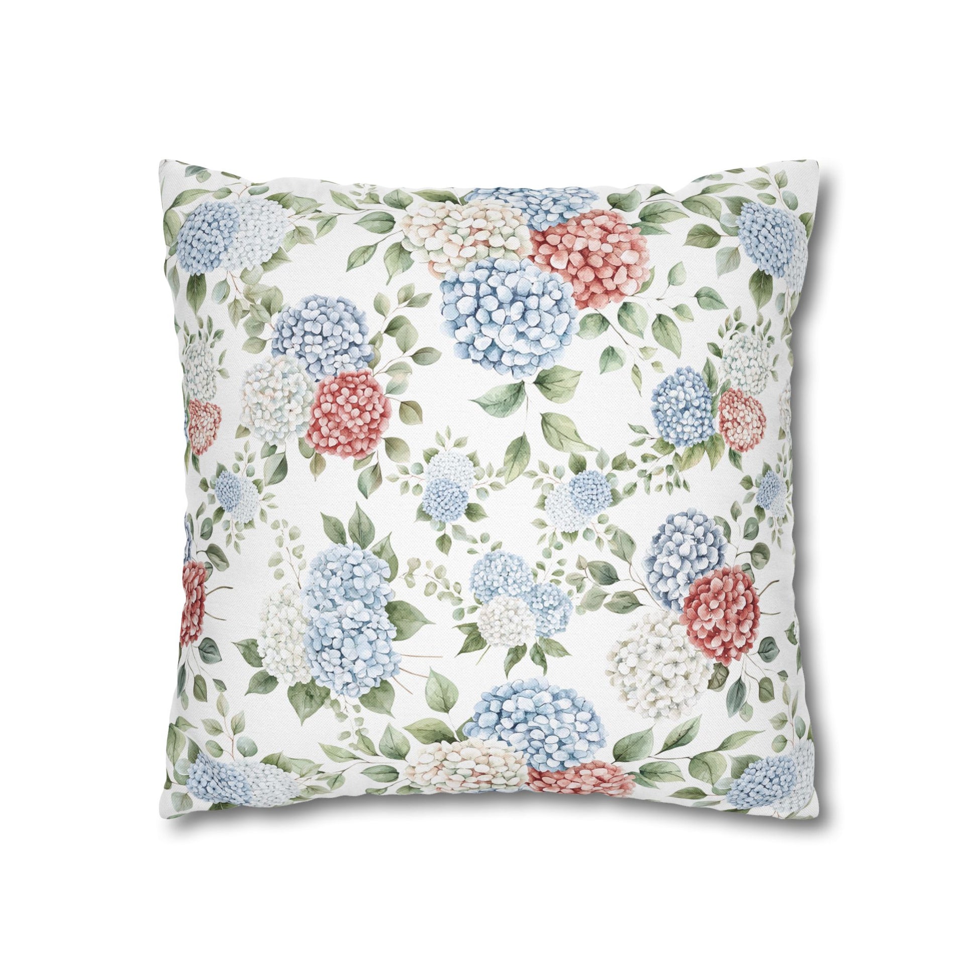 Watercolor Patriotic Hydrangea Pillow Cover, 4th of July Pillow Cover, Farmhouse Summer Decor
