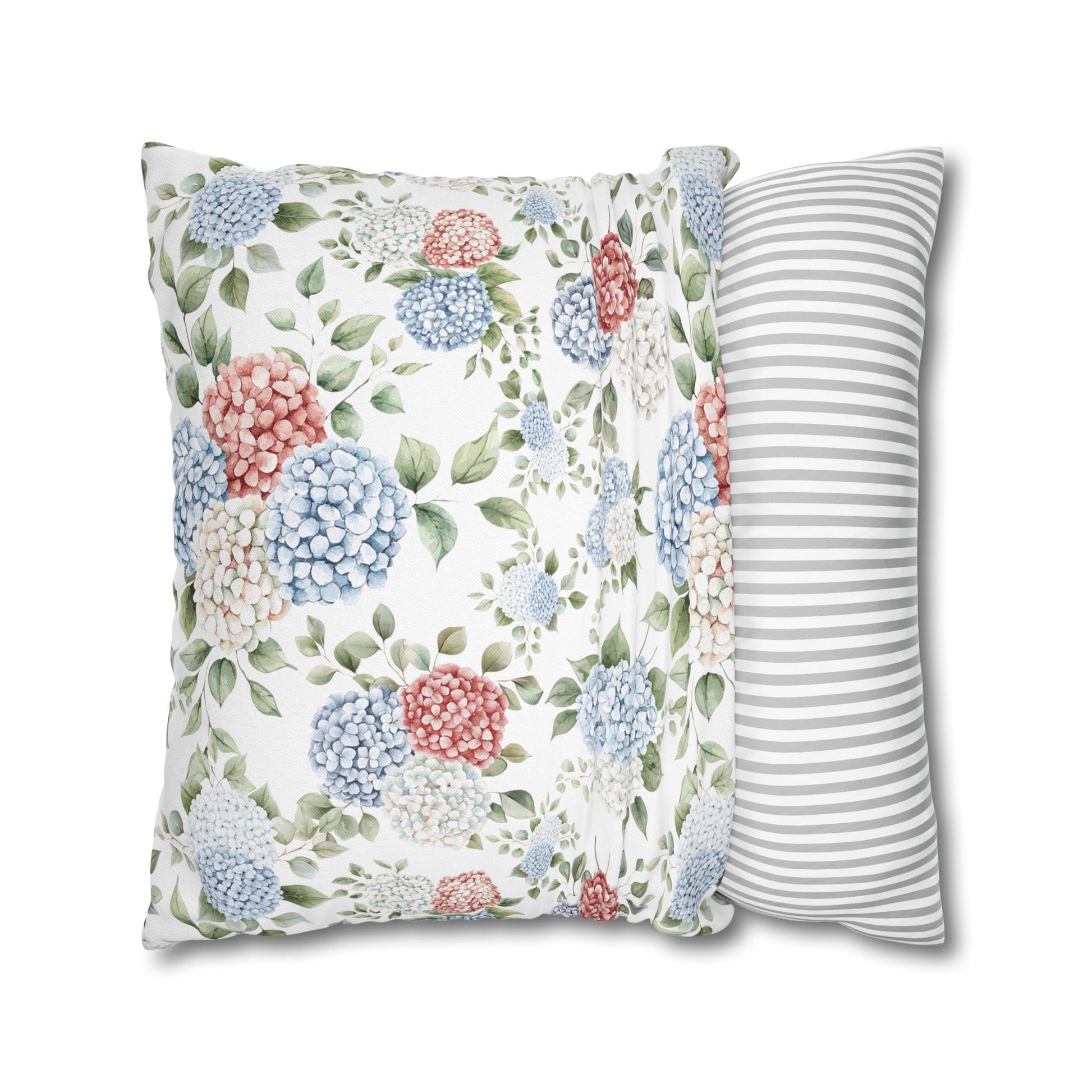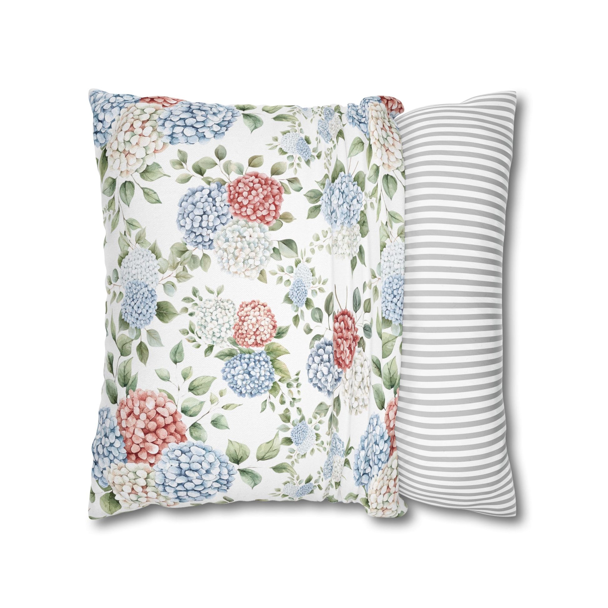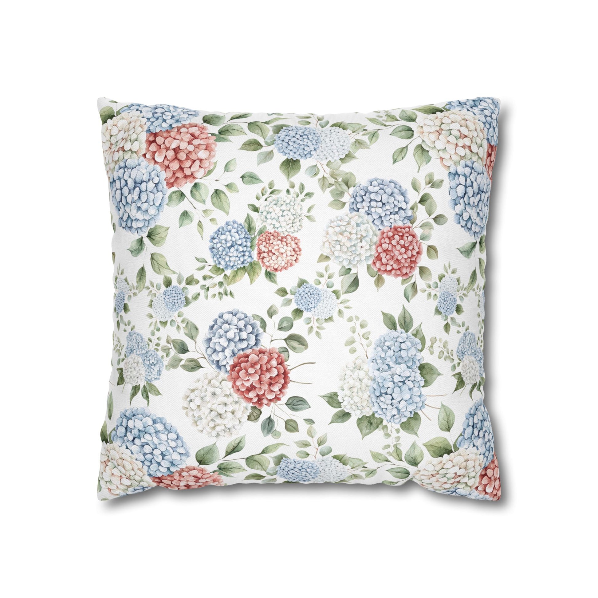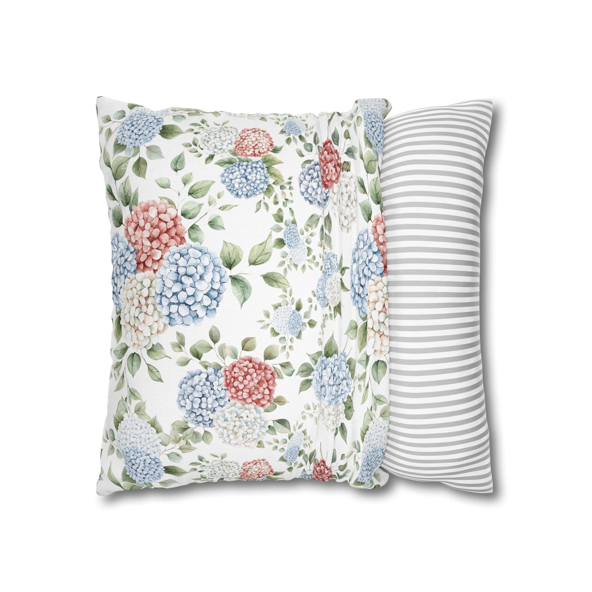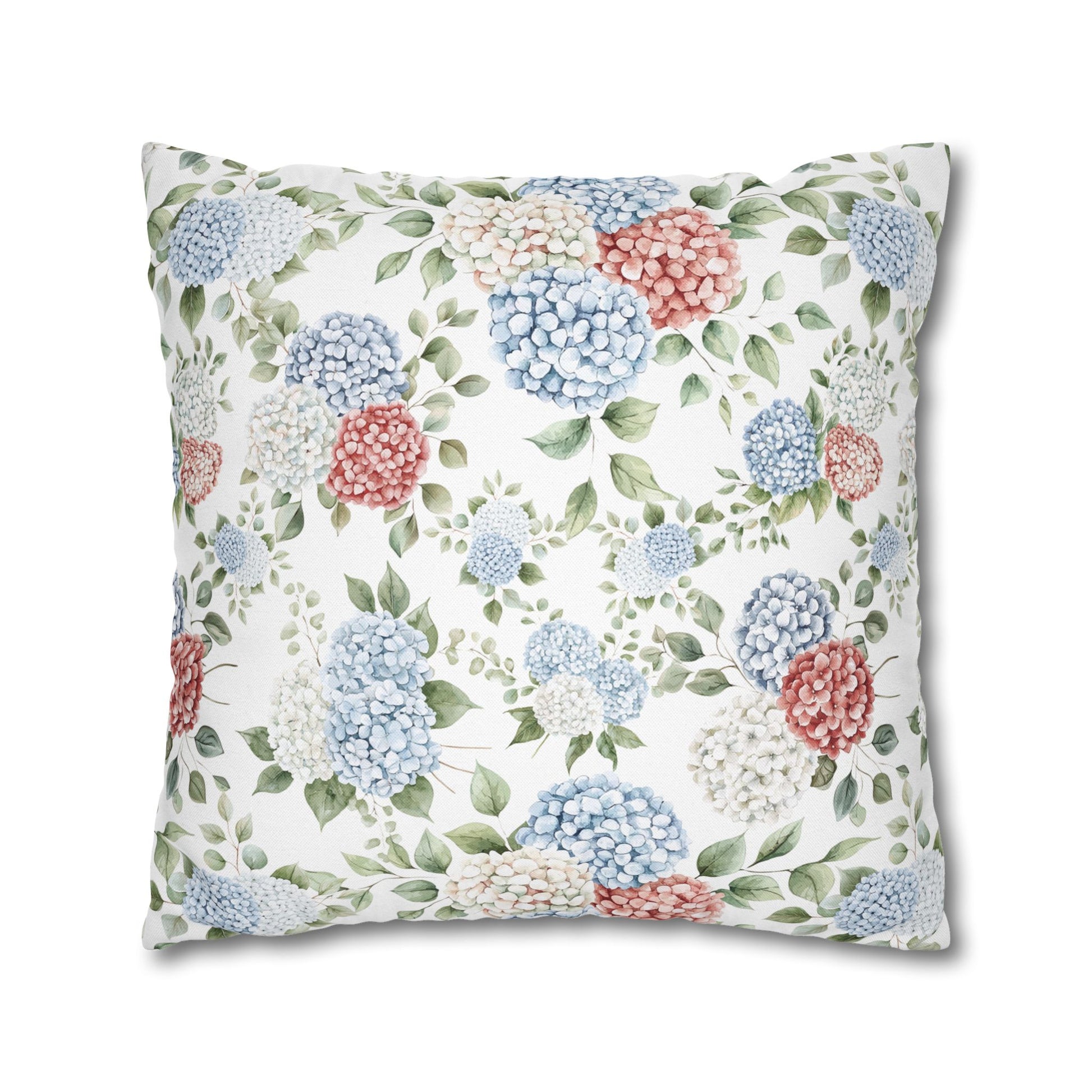 Watercolor Patriotic Hydrangea Pillow Cover, 4th of July Pillow Cover, Farmhouse Summer Decor