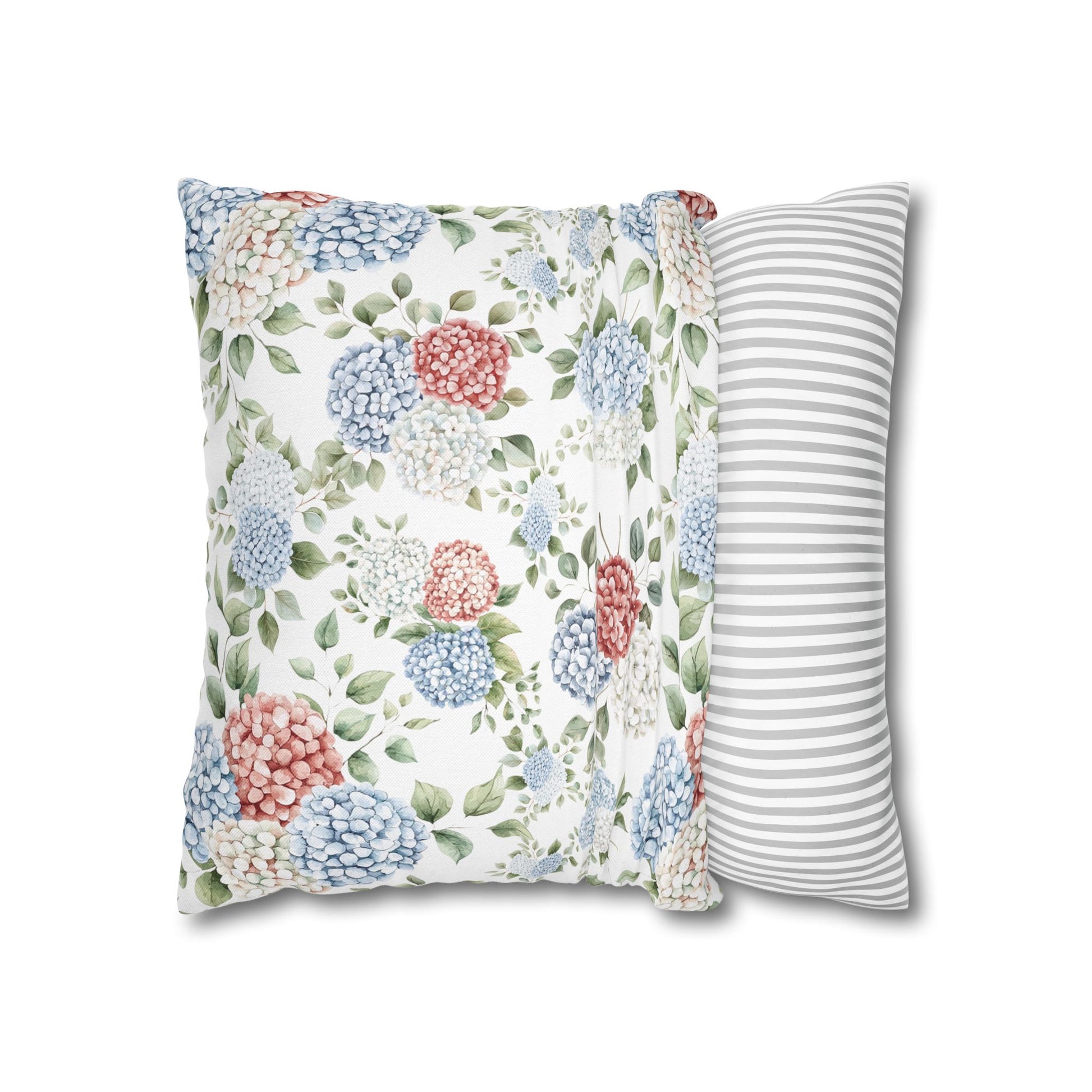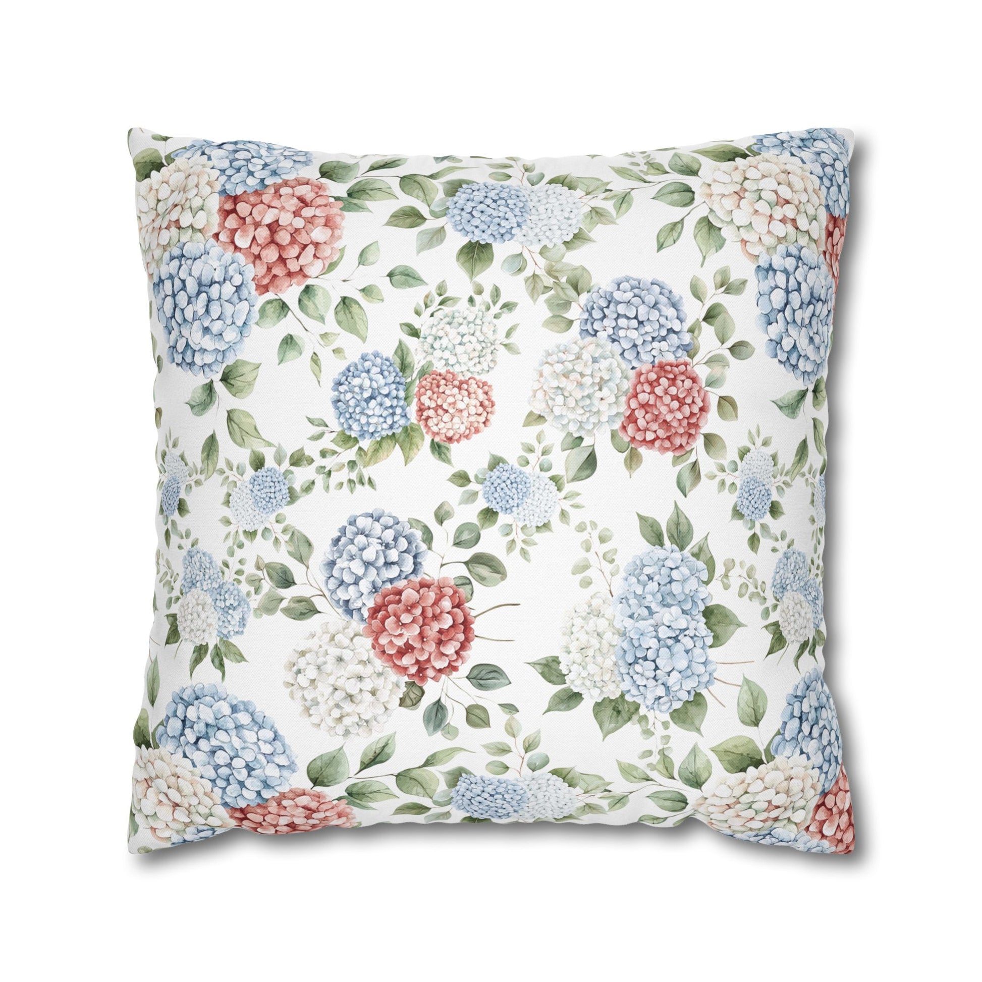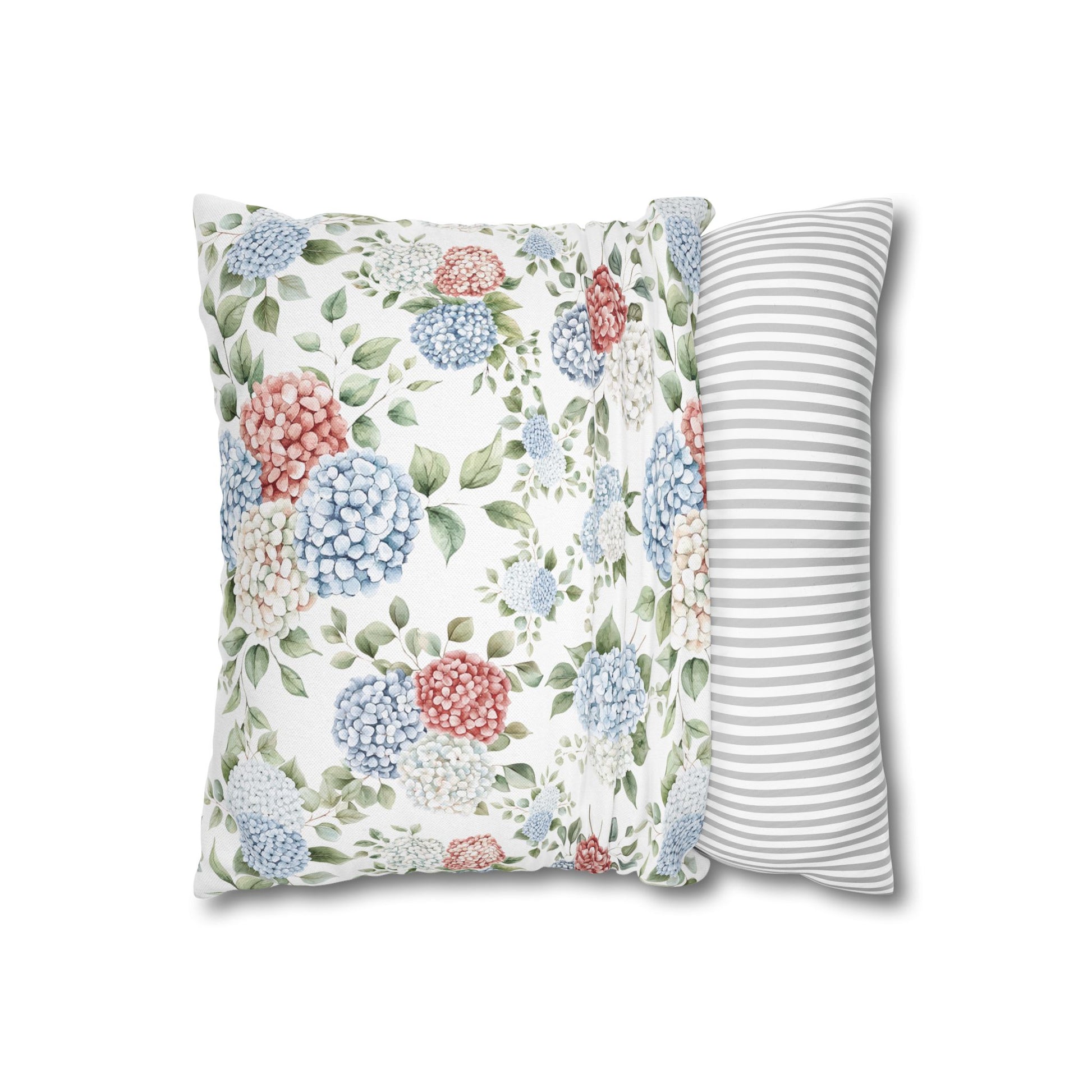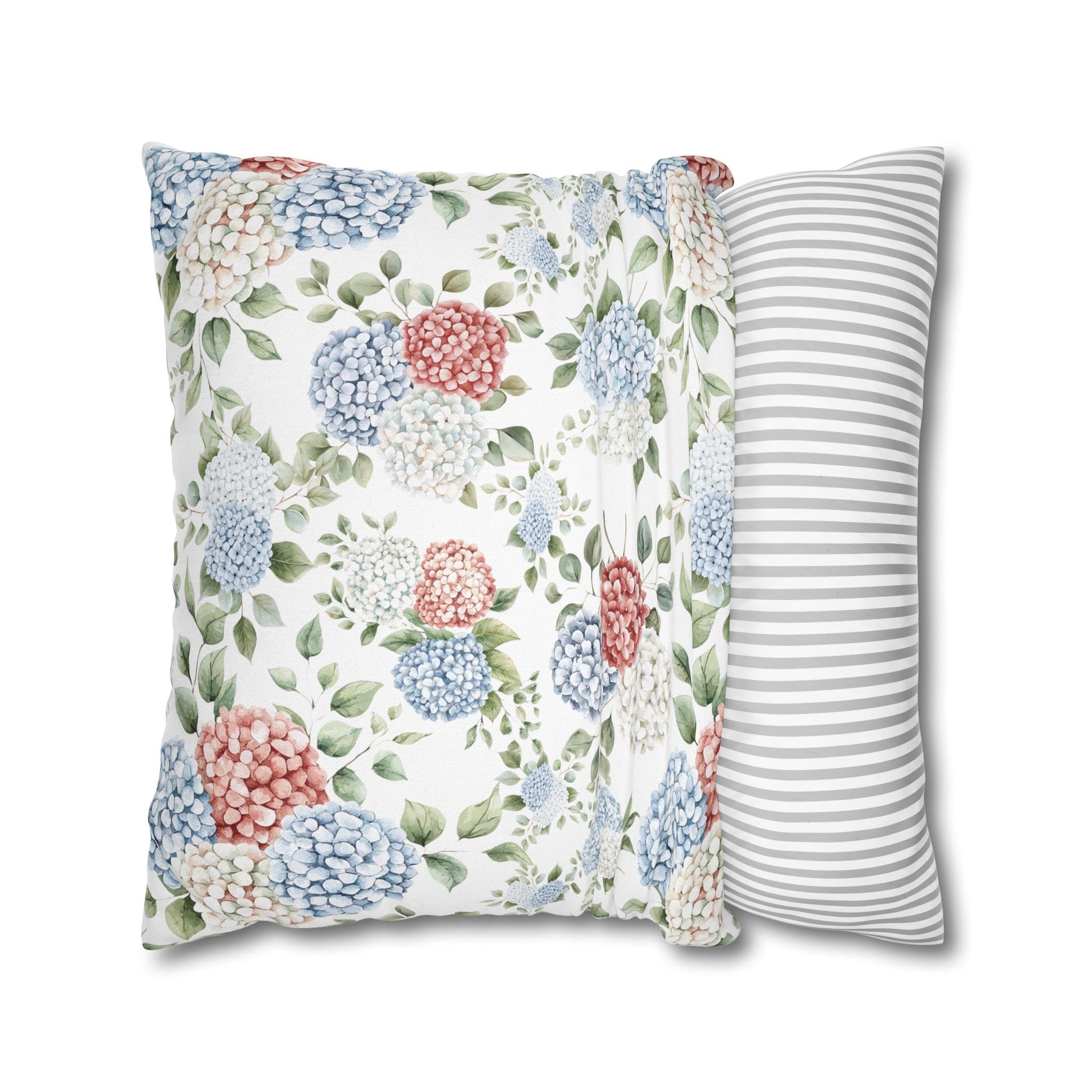 Watercolor Patriotic Hydrangea Pillow Cover, 4th of July Pillow Cover, Farmhouse Summer Decor